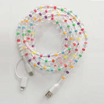 Et à la mode un à deux câble de données perlé, 2-en-1 fait à la main coloré perle câble de charge rapide