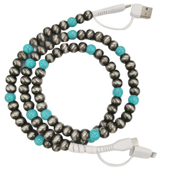 Câble de données perlé couleur cuivre deux à deux, câble de charge perlé quatre en un, cadeau perle turquoise, personnalisation USB