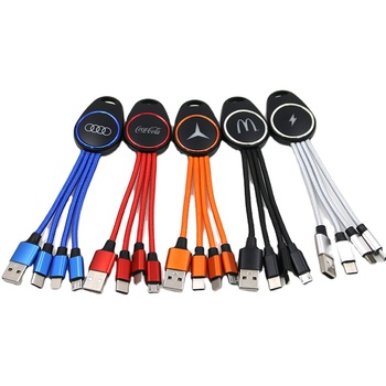 1 대 3 발광 키체인 데이터 케이블, 3 대 1 다기능 휴대폰 충전 케이블, 4 대 1 맞춤형