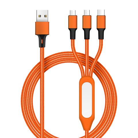 휴대용 LED 야간 조명 기프트, 1 대 3 데이터 케이블, C형 쓰리인원 차량용 충전 케이블